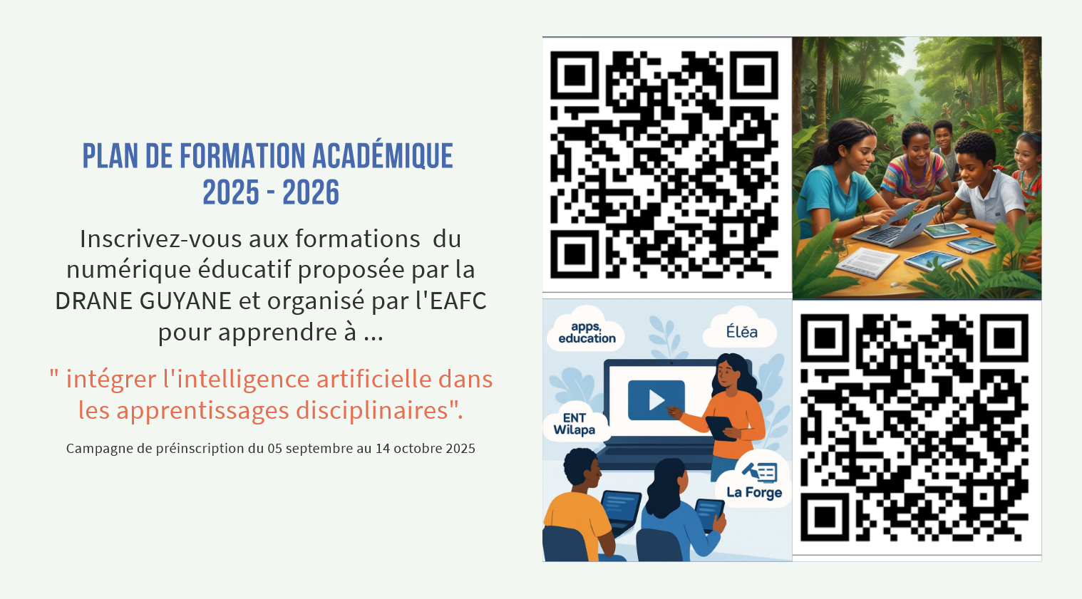 La DRANE de l’académie de Guyane organise via le PAF des formations au numérique.